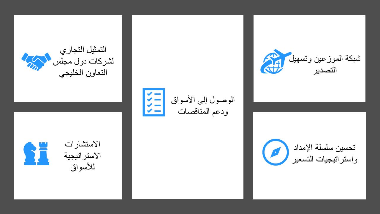 فريق متخصص من الخبراء يدعم دخول الأسواق والتوزيع والنمو التجاري طويل الأمد في أوروبا ودول مجلس التعاون الخليجي. لنبنِ توسعك القادم معًا