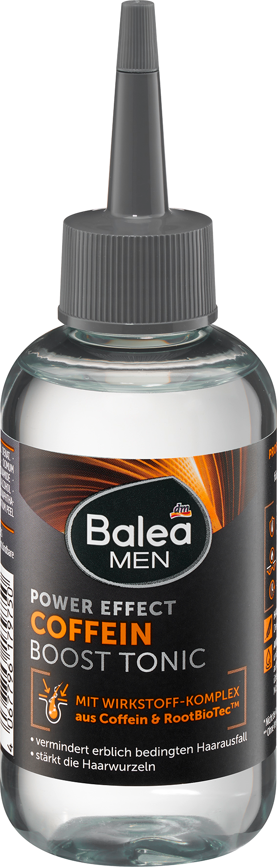 يضمن منشط Power Effect Caffeine Boost Tonic من Balea MEN إحساسا حيويا بفروة الرأس وتقوية الشعر. تم تصميم منشط الشعر هذا خصيصا لمواجهة تساقط الشعر وتنشيط فروة الرأس *. يتغلغل مركب المكونات النشطة المبتكر من الكافيين و RootBioTec TM بعمق في جذور الشعر ويدعم تقويتها. بالإضافة إلى ذلك ، فإن التركيبة التي تحتوي على البانثينول تدلل فروة الرأس وترطب وتنعشها بشكل ملحوظ. يتم امتصاص المنشط بسرعة دون أن يكون دهنيا ، مما يجعله الرفيق اليومي المثالي لشعر قوي.