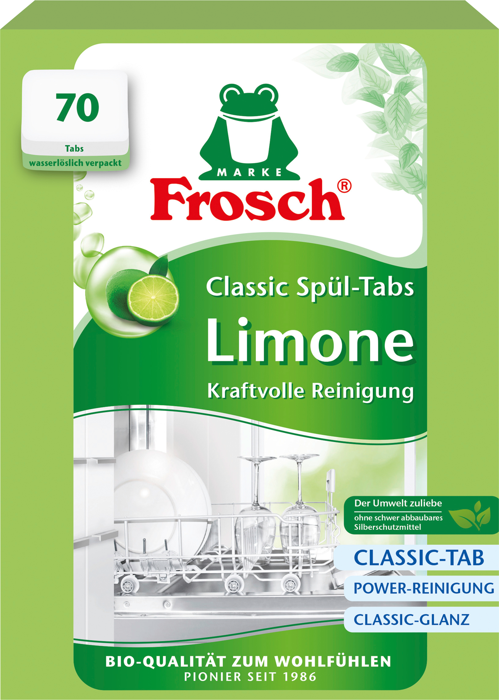 تضمن ألسنة غسالة الأطباق الكلاسيكية الفعالة من Frosch دائما نقاء ونضارة خاصين بعلامة تبويب واحدة فقط. ألسنة غسالة الصحون القوية الخالية من الفوسفات تثير الإعجاب بقدرتها العالية على إذابة الشحوم.تحذير