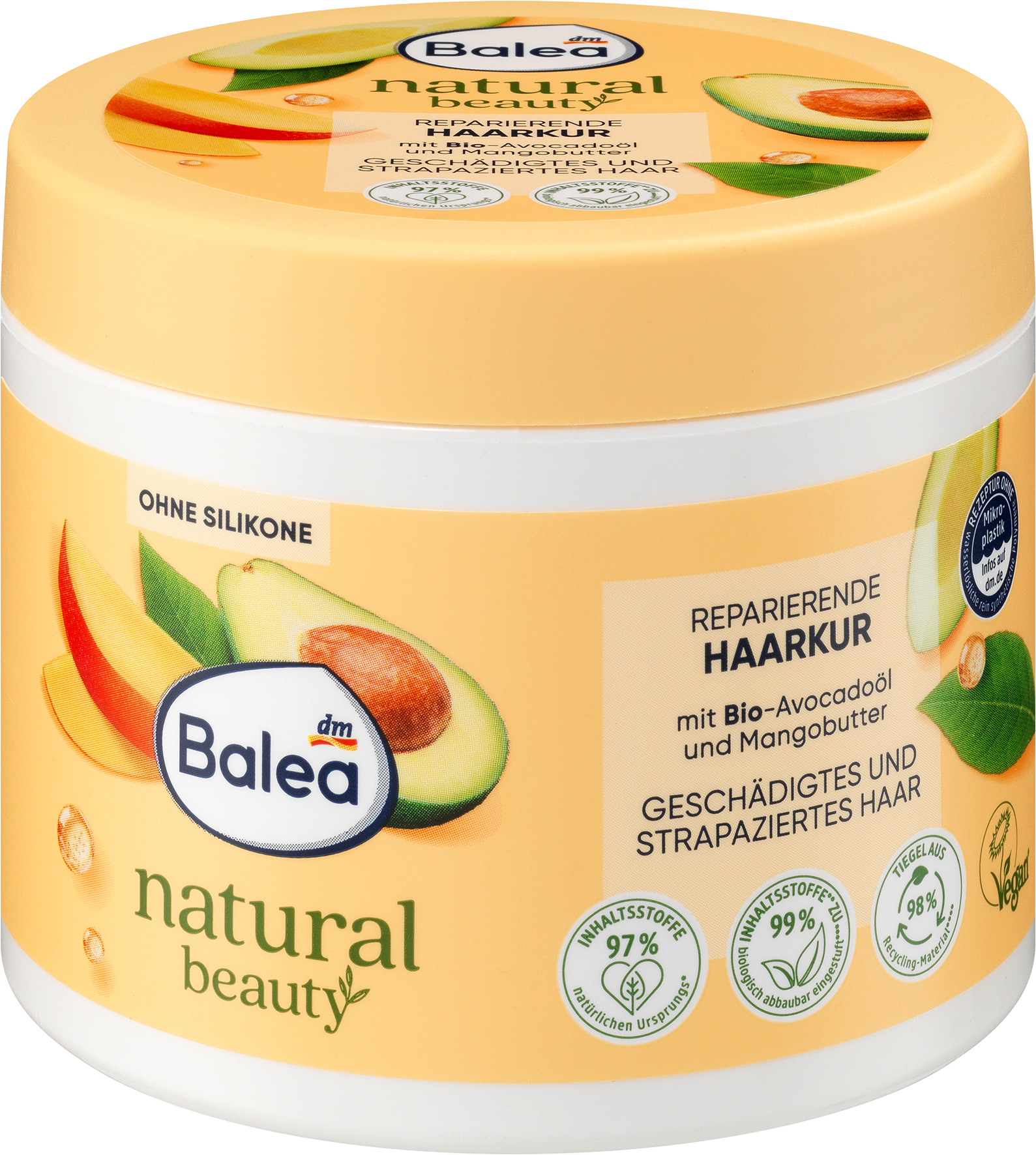 للشعر التالف والتالف مع زيت الأفوكادو العضوي وزبدة المانجو97٪ مكونات من أصل طبيعي المكونات 99٪ قابلة للتحلل البيولوجي