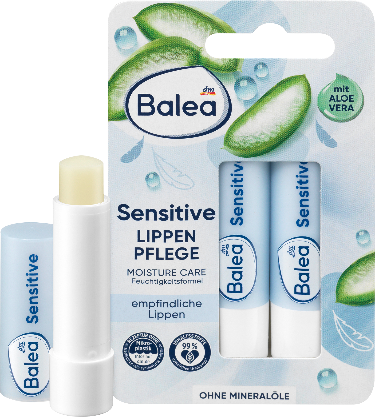 يمنحك العناية بالشفاه الحساسة من Balea الليونة والعناية والحماية في عبوة مزدوجة. التركيبة القيمة المكونة من زبدة الشيا وزيت اللوز وزيت الأفوكادو والصبار تغذي منطقة الشفاه الحساسة بشكل موثوق وتتكون أيضا من 99٪ من محتوى طبيعي.