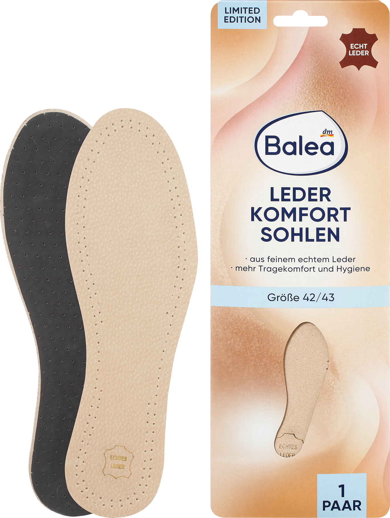 النعل الجلدي بمقاس 42/43 من Balea مريح وصحي بشكل خاص. لكل حذاء كل يوم: نعال Balea Leather Comfort المصنوعة من الجلد الناعم والمثقوب تمتص الرطوبة وتعزز دوران الهواء. يضمن الجانب السفلي المبطن المصنوع من رغوة اللاتكس ملمسا ناعما بشكل خاص.
