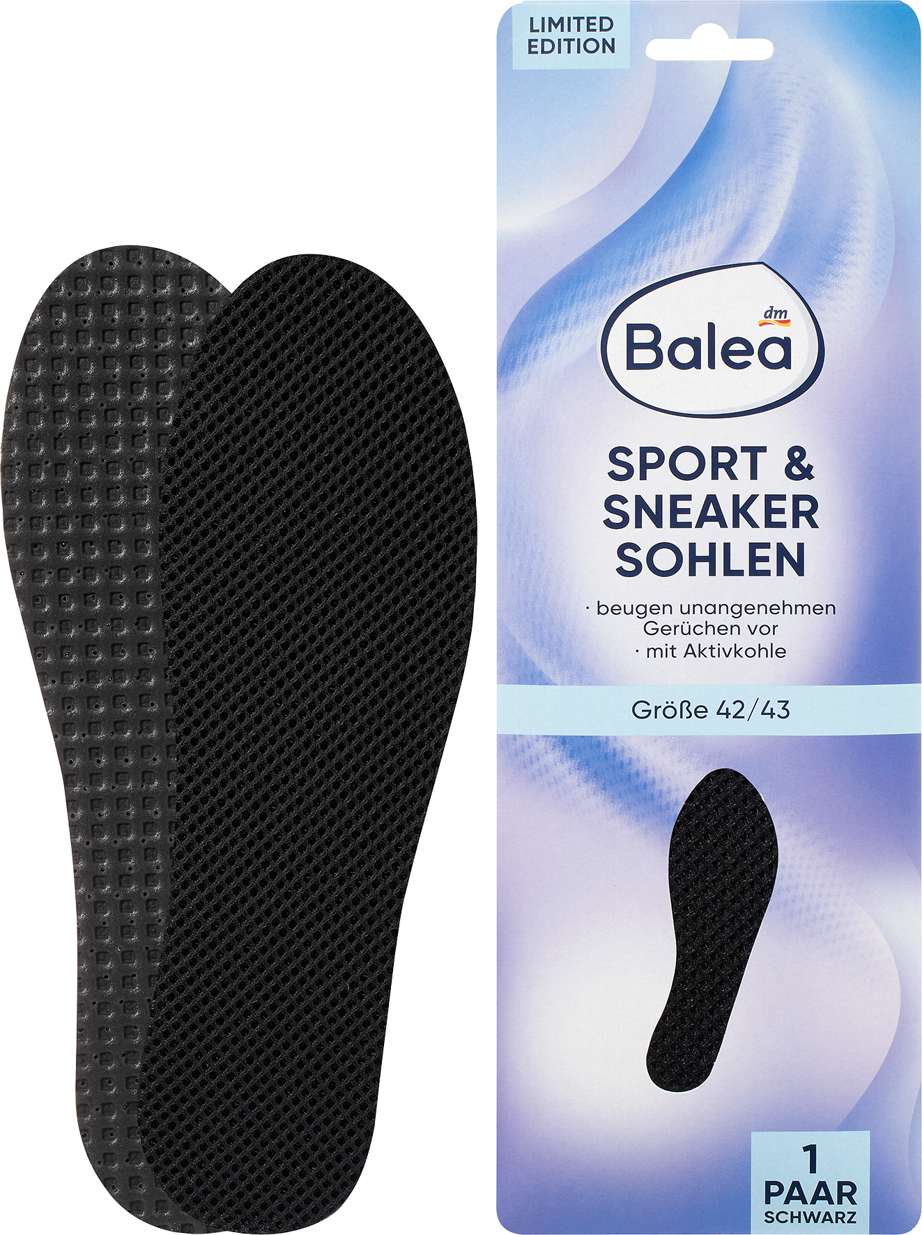 يستخدم نعال Balea Sport & Sneaker السوداء بمقاس 42/43 نسيجا شبكيا خاصا في هيكل قرص العسل لضمان دوران الهواء الجيد وبالتالي الحفاظ على مناخ القدم الجاف. يمتص الكربون المنشط الروائح الكريهة ويضمن الجانب السفلي من رغوة اللاتكس الناعمة المنقوشة ملاءمة مريحة – خاصة للأحذية الرياضية والأحذية الرياضية. راحة مثالية للعمل والترفيه والرياضة.صنع في بولندا”}]