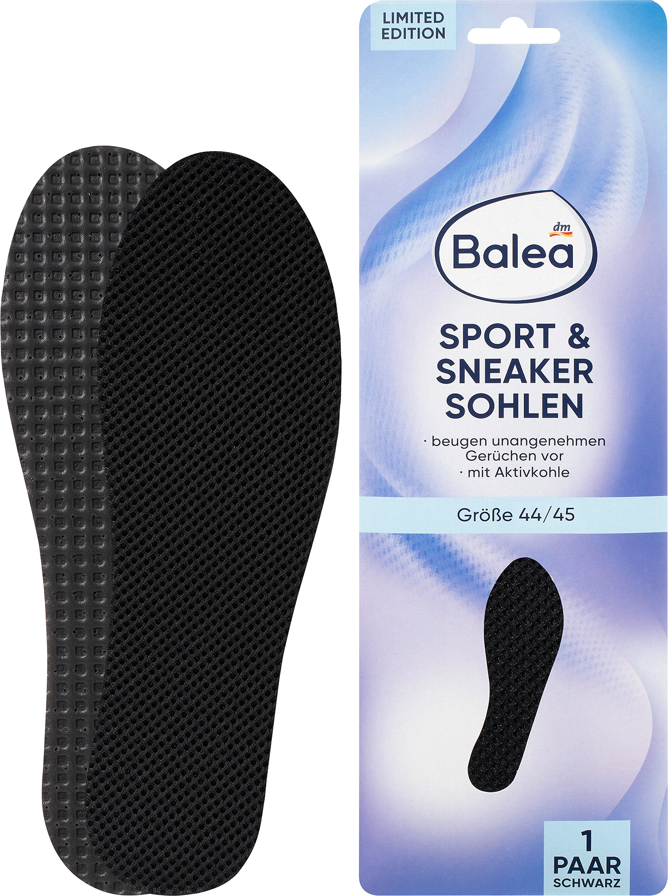 يضمن نعال Balea Sport & Sneaker السوداء بمقاس 44/45 دورانا جيدا للهواء مع نسيج شبكي خاص في هيكل قرص العسل وبالتالي يحافظ على مناخ القدم الجاف. يمتص الكربون المنشط الروائح الكريهة ويضمن الجانب السفلي من رغوة اللاتكس الناعمة المنقوشة ملاءمة مريحة – خاصة للأحذية الرياضية والأحذية الرياضية. راحة مثالية للعمل والترفيه والرياضة.صنع في بولندا”}]