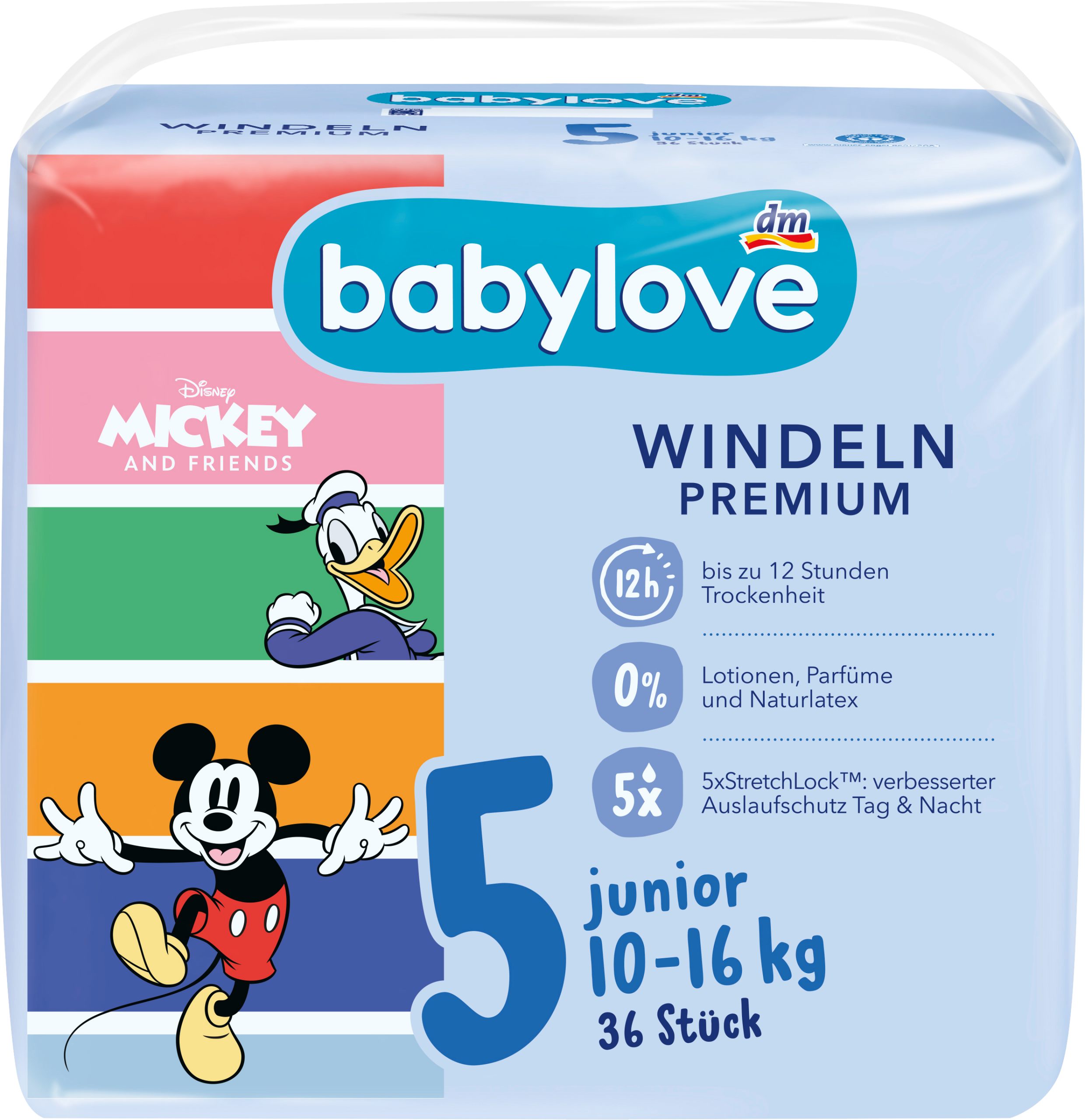 بيبي لوف حفاضات ديزني بريميوم مقاس 5 جونيور (10-16 كجم)، 36 قطعة