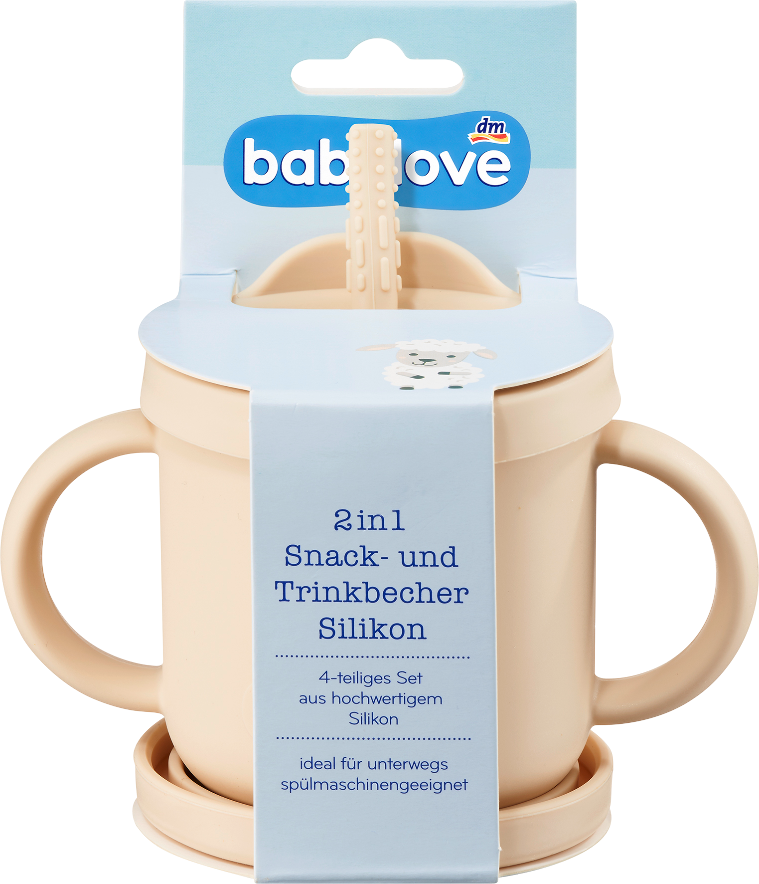 كوب الوجبات الخفيفة والشرب البيج 2 في 1 من بيبي لوف مصنوع من السيليكون عالي الجودة. تتكون المجموعة المكونة من أربع قطع من كوب وغطاءين وقش شرب. هذا يعني أنه يمكن اصطحاب المشروبات أو الوجبات الخفيفة بسهولة في أي مكان.
