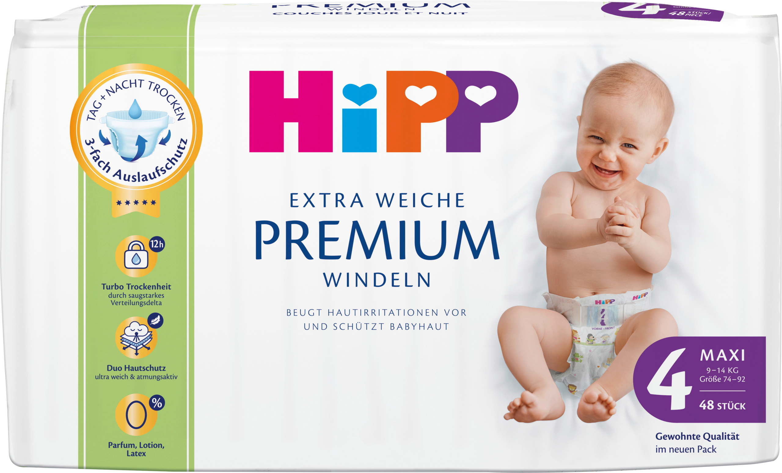 حفاضات هاي بي مقاس بريميوم 4 ماكسي (9-14 كجم)، 48 قطعة