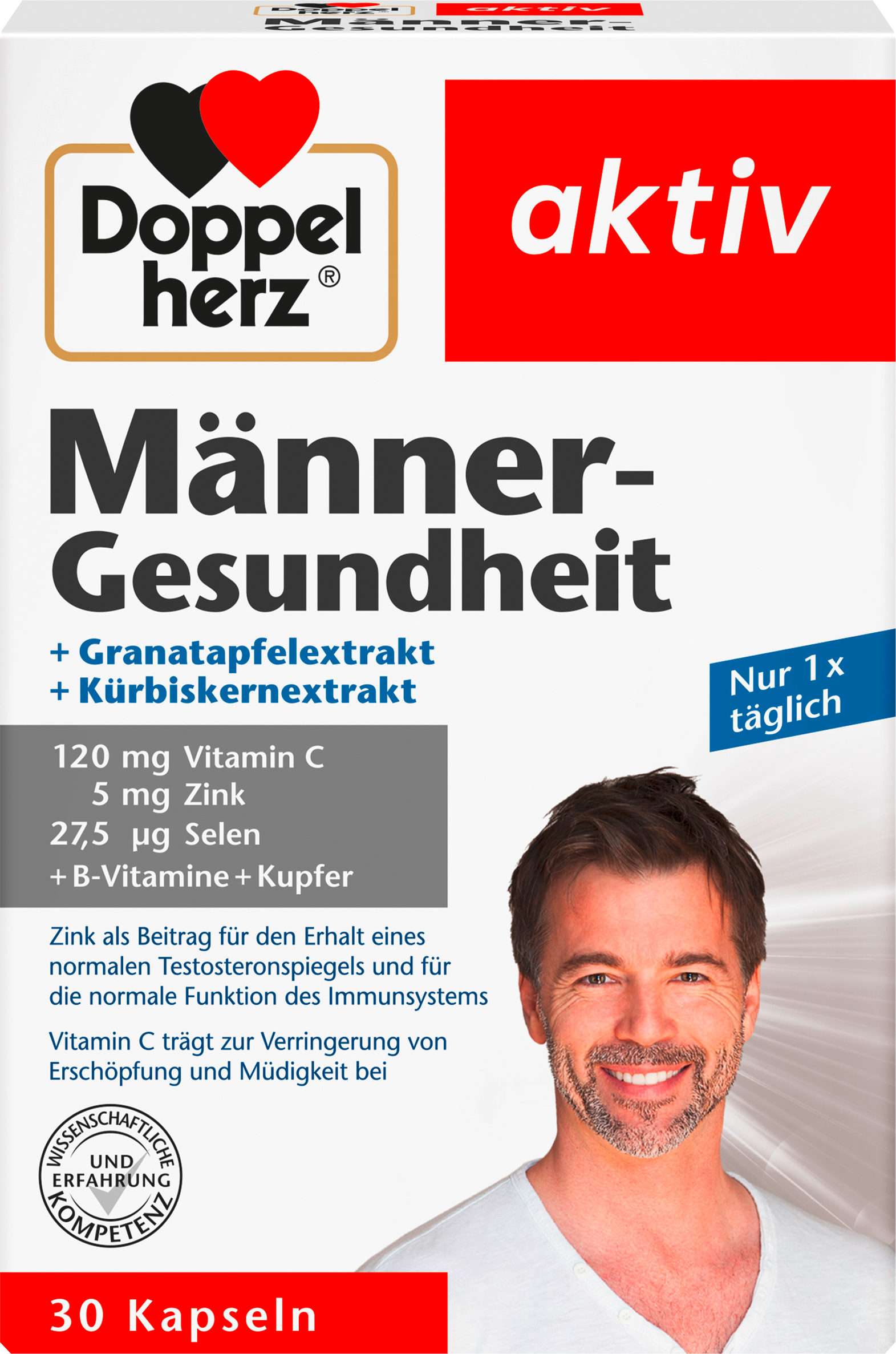 تحتوي كبسولات صحة الرجال من Doppelherz على مزيج من الزنك والفيتامينات ومستخلص بذور الرمان واليقطين. في حين أن الزنك يمكن أن يدعم الحفاظ على مستويات هرمون التستوستيرون الطبيعية والوظيفة الطبيعية لجهاز المناعة ، فإن فيتامين سي الذي يحتوي عليه يمكن أن يساعد في تقليل التعب والتعب. مواصفات المنتج: خالي من اللاكتوز وخالي من الغلوتين “}]