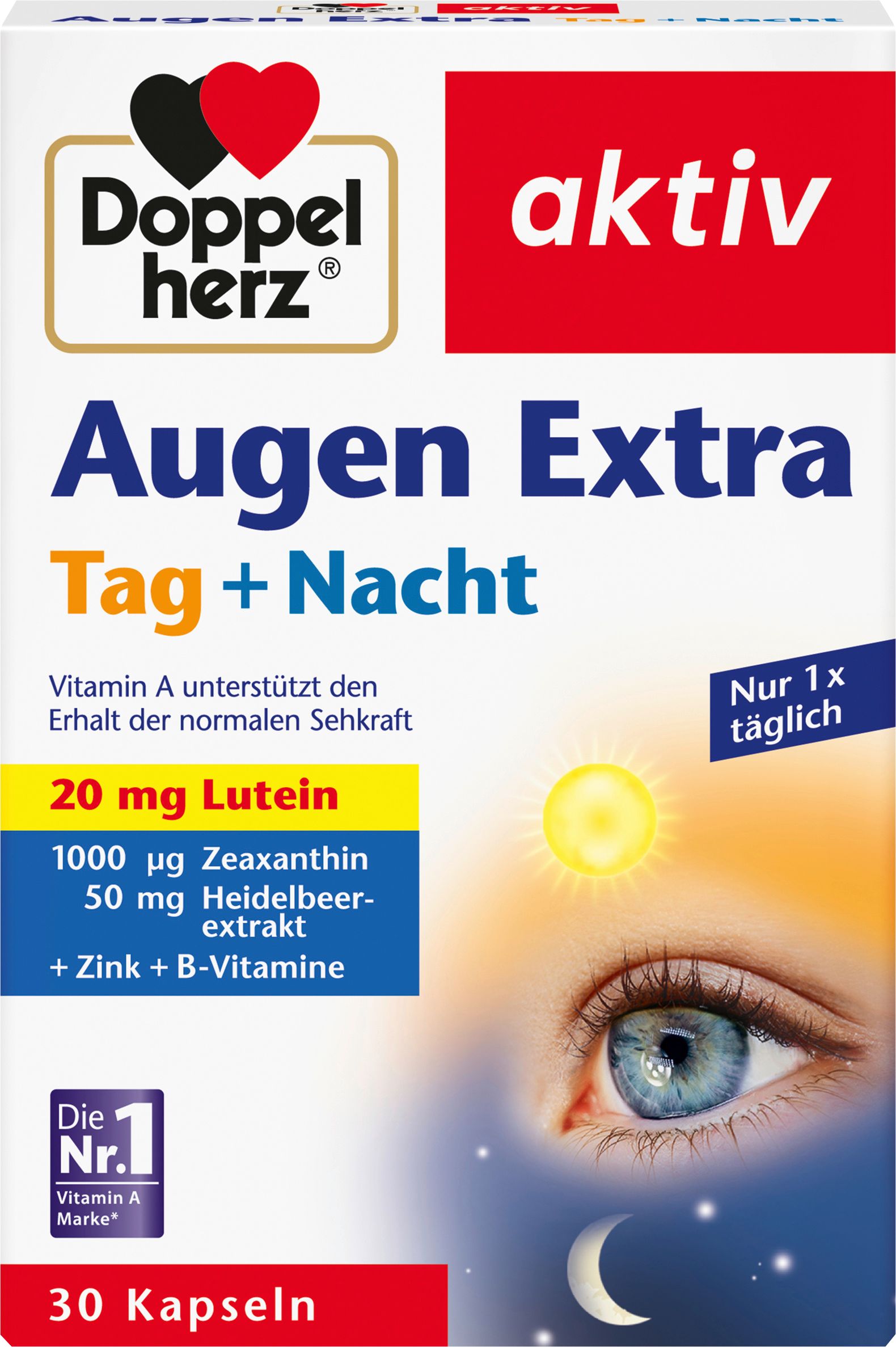 يوما بعد يوم ، تستخدم أعيننا ، سواء كانت تقرأ أو تعمل أو تقود السيارة. باستخدام المكمل الغذائي من Doppelherz ، يمكنك دعم بصرك في عمله اليومي. بغض النظر عن مدى تحدي عينيك ، مع كبسولات Eye Extra Day + Night Capsule يمكنك تزويد جسمك بالمواد الضرورية. تحتوي هذه على فيتامين أ والزنك ، والتي يمكن أن تساعد في الحفاظ على الرؤية. بالإضافة إلى ذلك ، يحتوي المكمل الغذائي على مستخلص اللوتين والزياكسانثين والتوت الأزرق.خصائص المنتج: خالي من اللاكتوز “}]