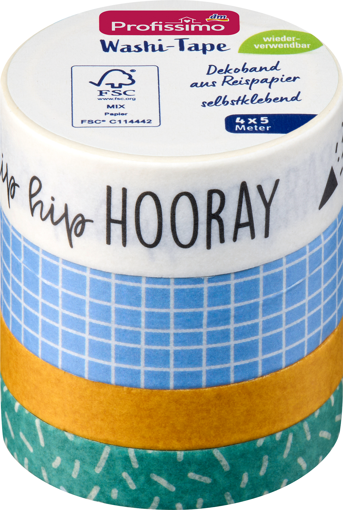 شريط washi “All the Best” من Profissimo عبارة عن شريط لاصق سهل التمزق يدويا ومصنوع من ورق الأرز. لها سطح غير لامع وشفاف قليلا ويمكن الكتابة عليها بأقلام مختلفة. نظرا للاصقه الخاص ، فإنه يلتصق بالعديد من الأسطح المختلفة مثل الورق والجدران والنسيج ، ولكن أيضا على الأسطح الملساء مثل المعدن والزجاج. إنه قابل للإزالة وإعادة الاستخدام دون ترك أي بقايا. مثالية لتزيين الحرف اليدوية والتزيين وما إلى ذلك. صنع في الصين”}]