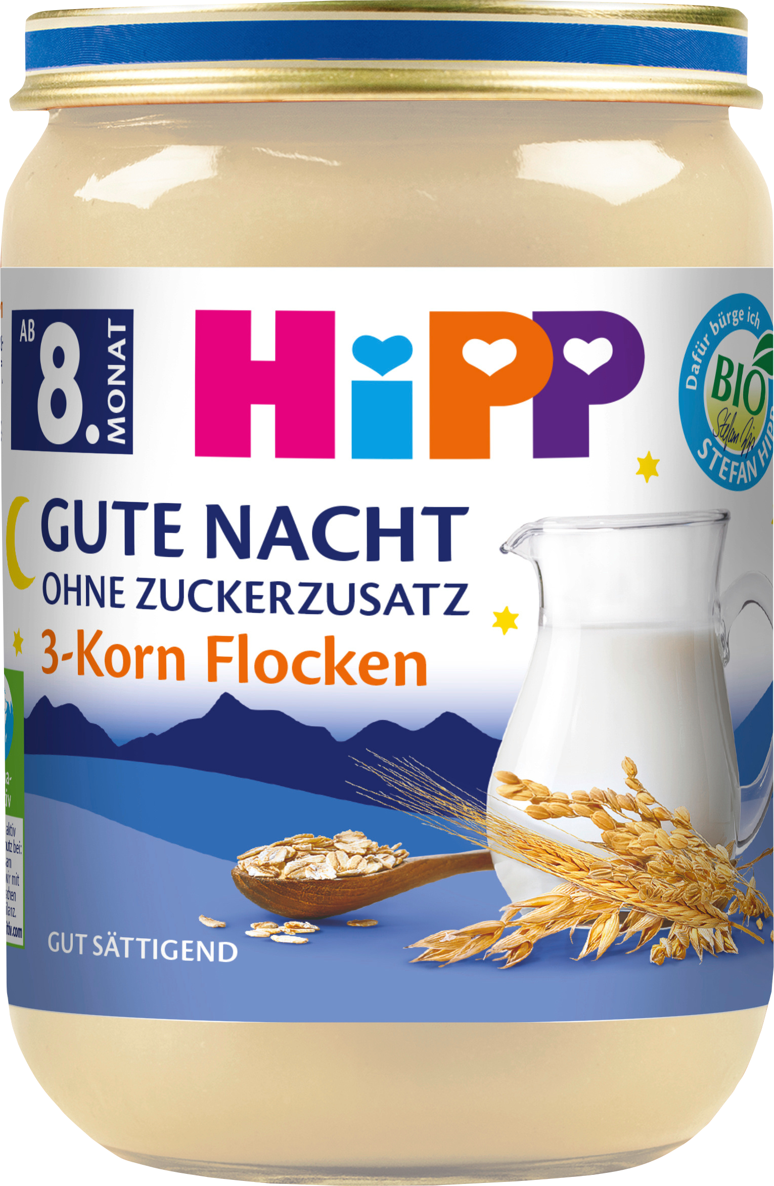 عصيدة HiPP Evening Porridge ليلة سعيدة من 3 رقائق حبوب من الشهر الثامن ، 190 جرام طعام تكميلي
