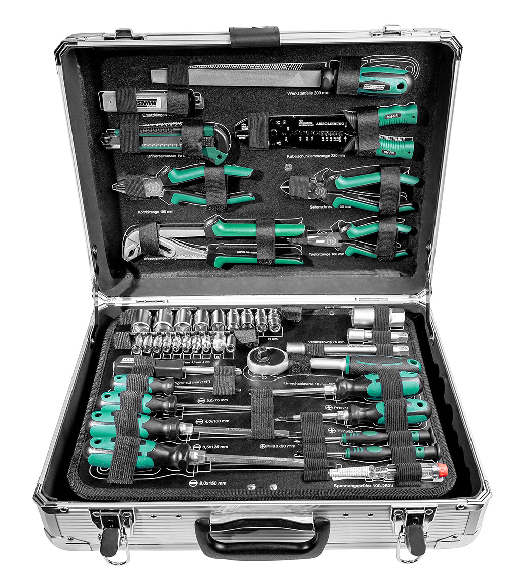 بفضل علبتها القوية المصنوعة من الألومنيوم وأداة فولاذية الكروم والفاناديوم عالية الجودة ، فأنت مجهز جيدا. سواء في المنزل أو في الحديقة أو في ورشة العمل ، فإن هذه الحقيبة لن تخذلك أبدا. والأفضل من ذلك كله ، أنك تحصل على ضمان لمدة 10 سنوات على هذا المنتج عالي الجودة. ثق في اختبار TÜV / GS واختبر أداء صندوق الأدوات هذا الذي سيساعدك في كل مشروع.