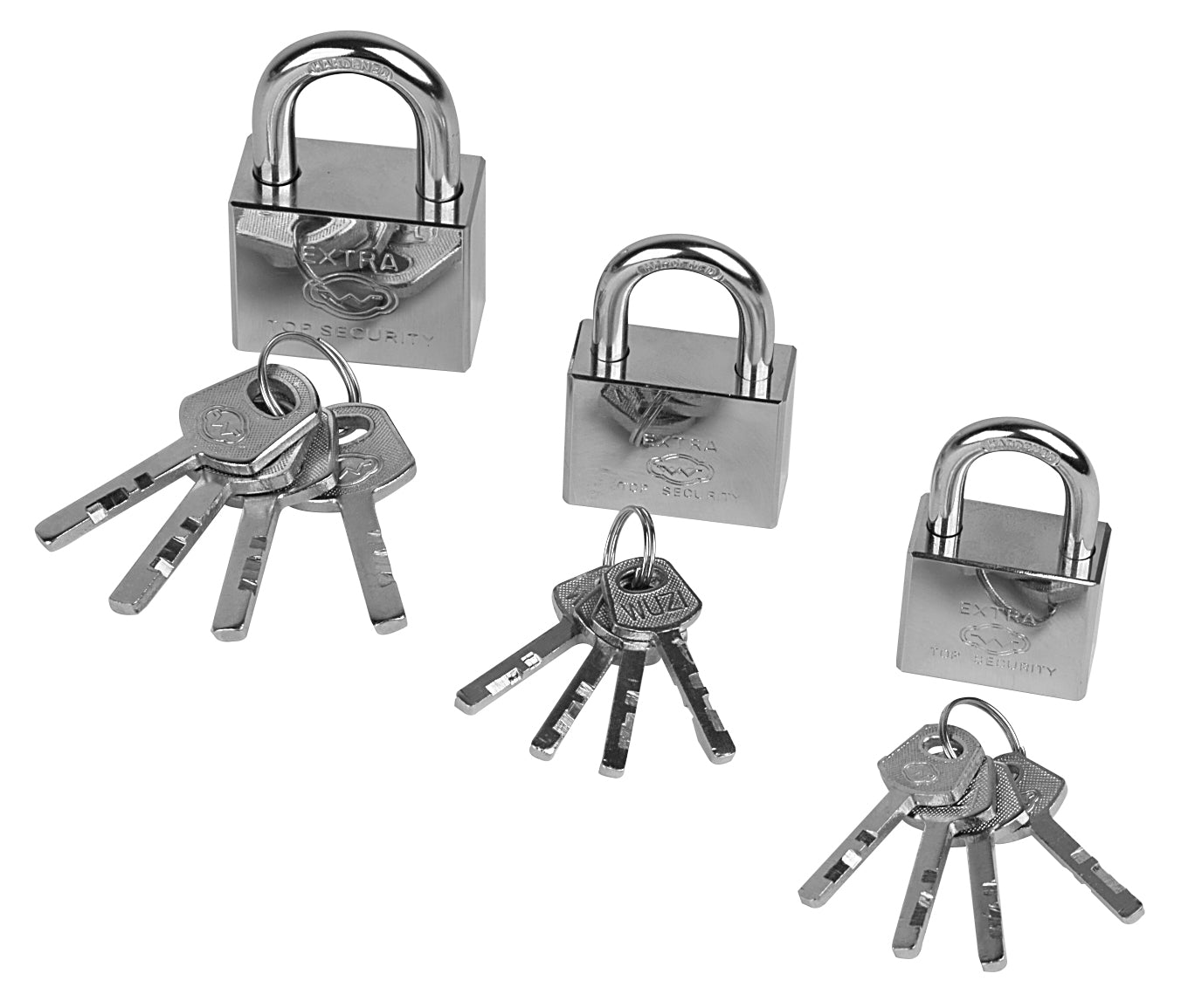 مصنوع من مادة مطلية بالكروم ، ويوفر لك جودة ومتانة من الدرجة الأولى. مع أربعة مفاتيح لكل قفل ، سيكون لديك دائما قطع غيار في متناول اليد. تتكيف الأحجام الثلاثة المختلفة (30 و 40 و 50 مم) مع كل احتياجاتك ، لذلك سواء كنت ترغب في تأمين خزاناتك أو أبوابك أو صناديقك ، فإن مجموعة القفل هذه هي الخيار الأمثل.