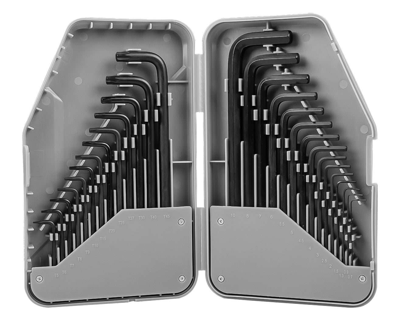 تتكون مجموعة المقبس السداسي Brüder Mannesmann ومجموعة مفاتيح الربط على شكل حرف T من 7 أجزاء ، ويمكن طيها للخارج وتوفر مجموعة واسعة من التطبيقات بفضل شكلها السداسي. مجموعة مدمجة وعملية لأعمال مفك البراغي الدقيقة أثناء الإصلاحات والتركيبات.