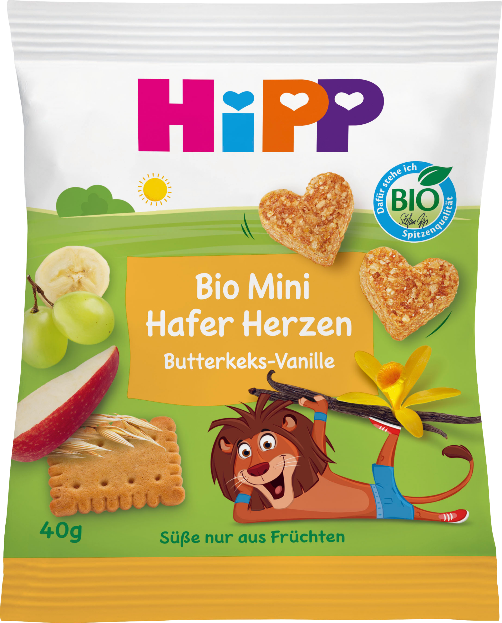 HiPP سناك للأطفال ميني شوفان قلوب بسكويت بالزبدة بالفانيليا، من 3 سنوات، 40 جرام