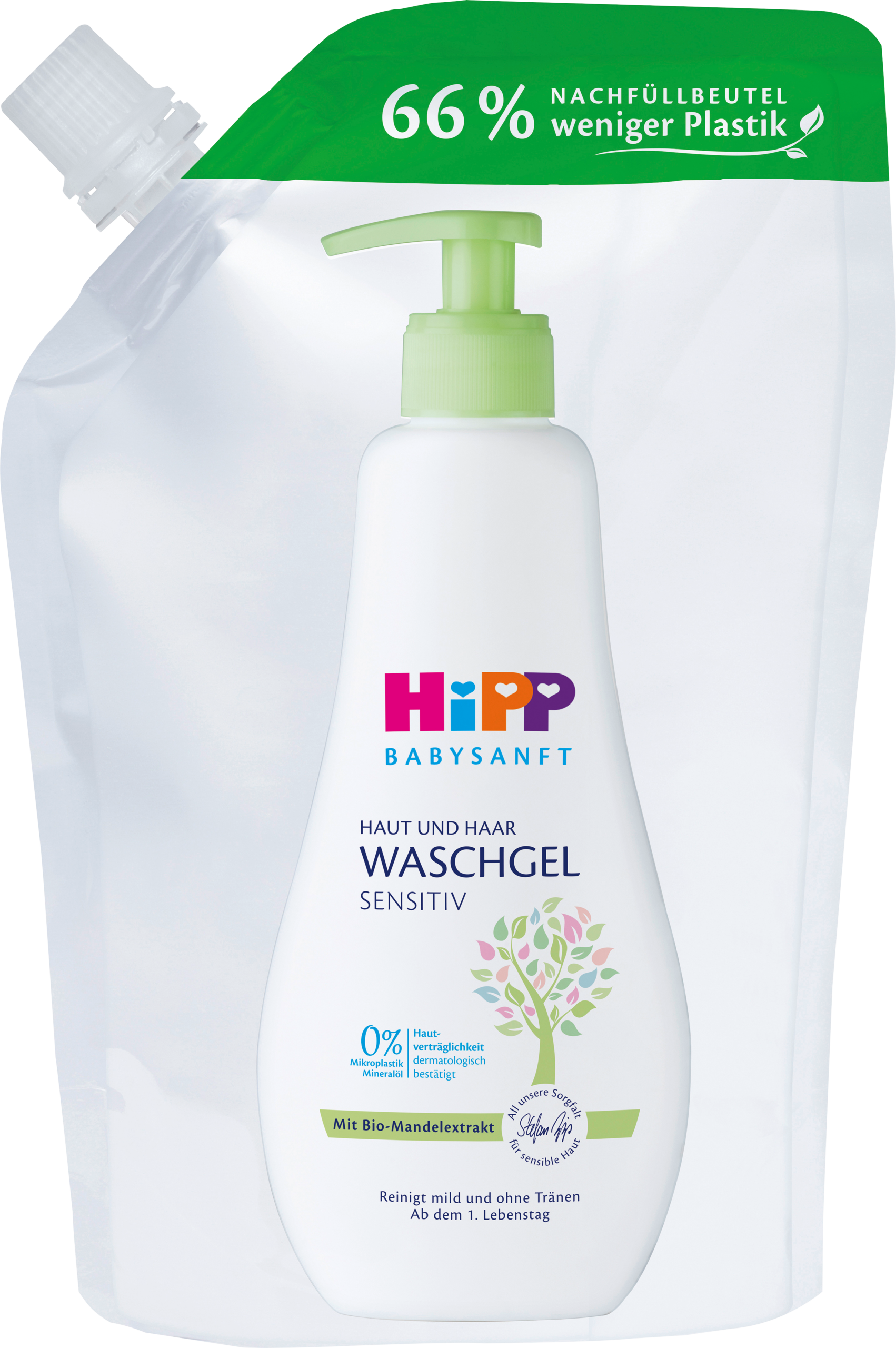 HiPP Babysanft جل غسول للأطفال للبشرة والشعر الحساس، عبوة إعادة التعبئة، 400 مل