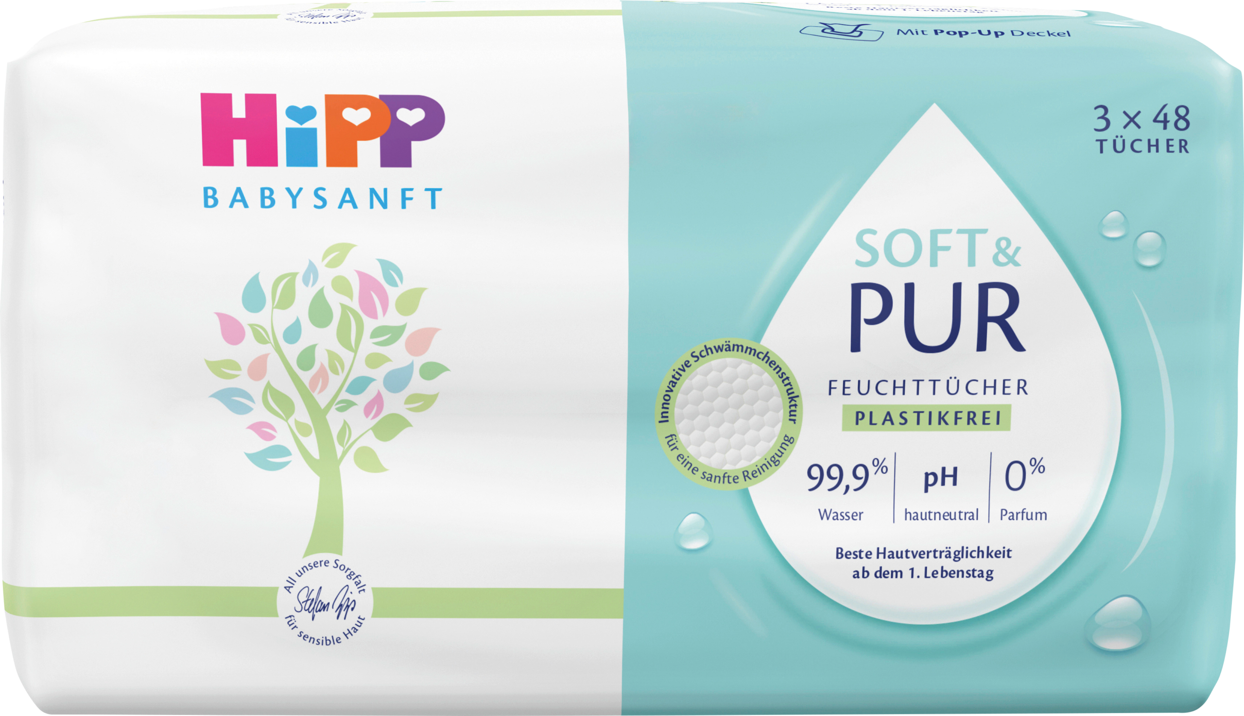 HiPP Babysanft مناديل مبللة ناعمة وريف 3 × 48 قطعة ، 144 قطعة.