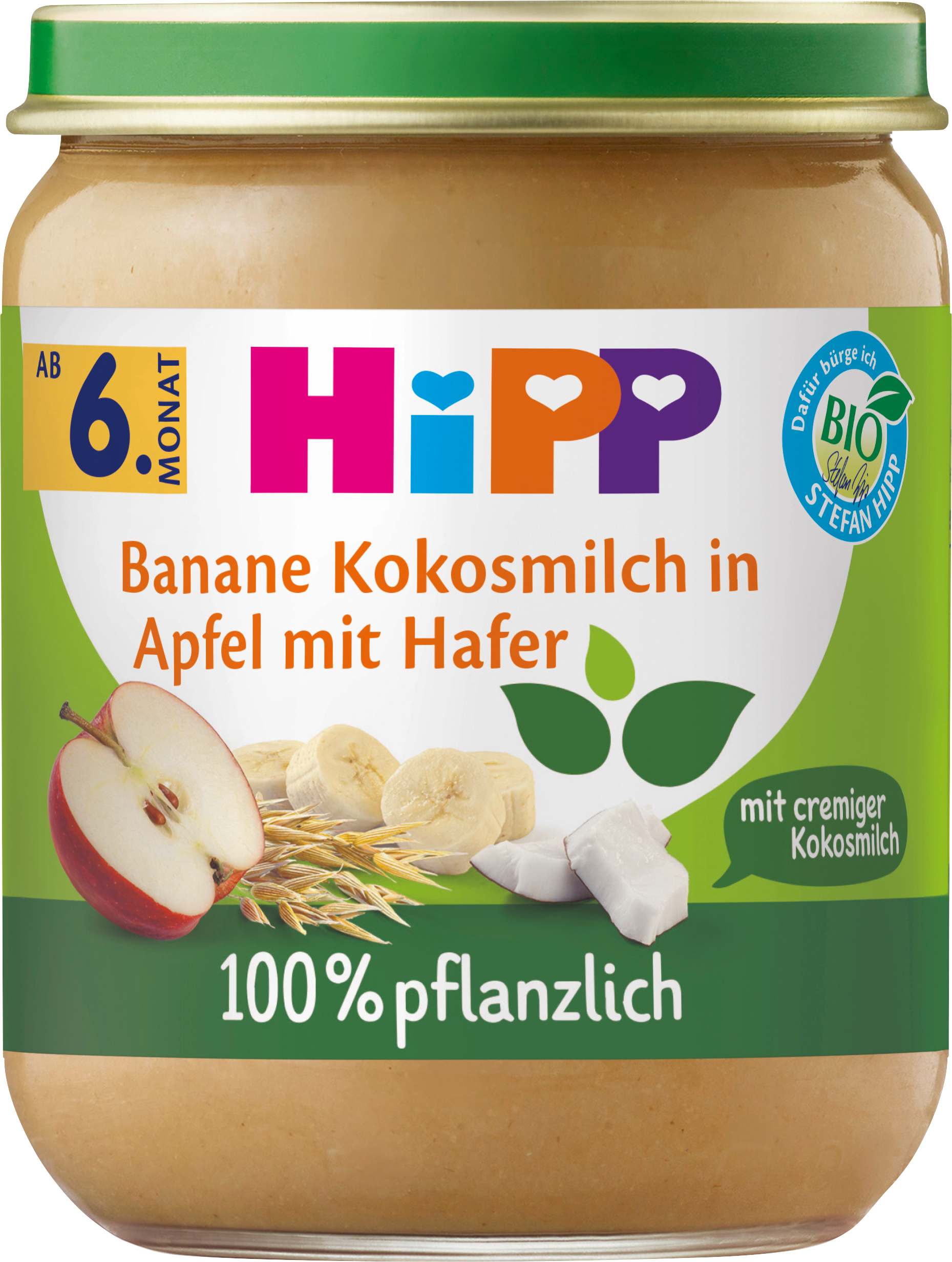 HiPP Fruit & Cereals حليب جوز الهند الموز في التفاح مع الشوفان من الشهر 6 ، 160 جرام طعام تكميلي
