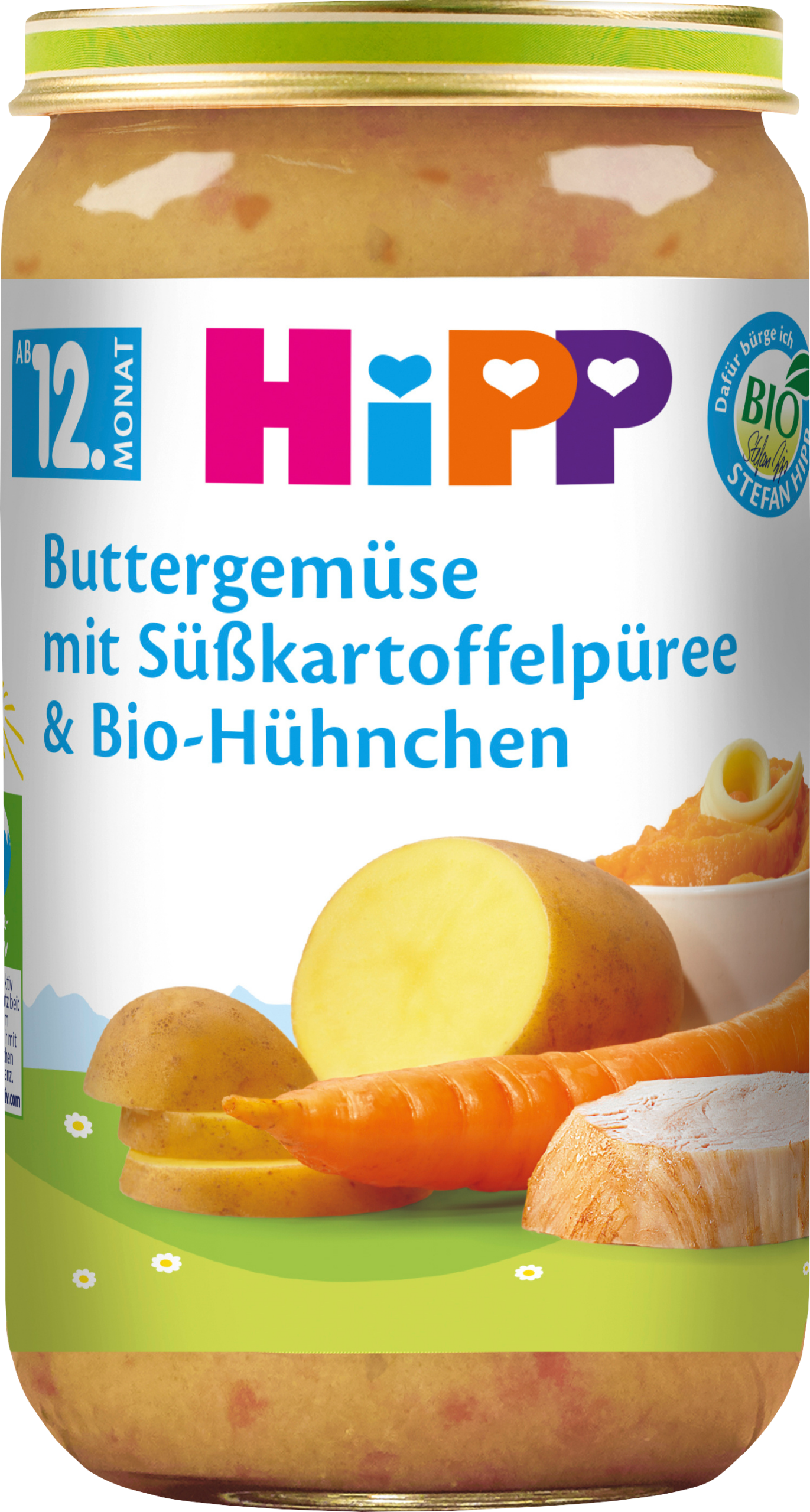 النكهة: خضروات بالزبدة مع البطاطا الحلوة المهروسة والدجاج العضوي وجبة صحية من الشهر 12 مع حمض ألفا لينولينيك (حمض أوميغا 3 الدهني) قطع رائعة لتعلم المضغ محتوى ملح صديق للأطفال