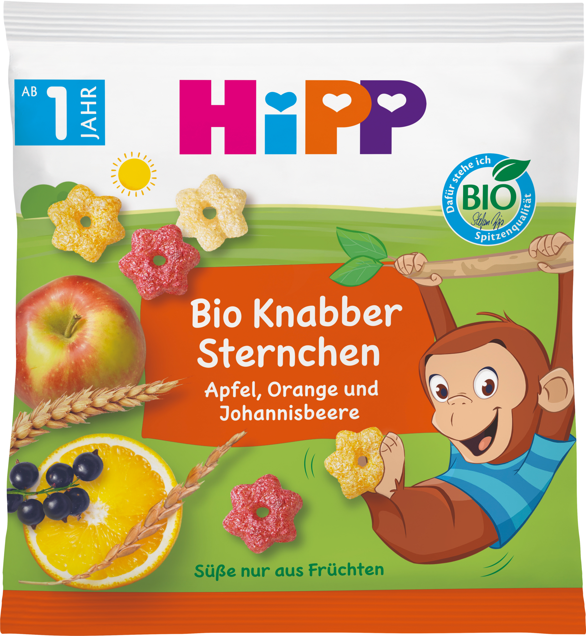 HiPP Snack للأطفال Nibbler Star مع التفاح والبرتقال والكشمش ، من 1 سنة ، 30 جرام طعام تكميلي
