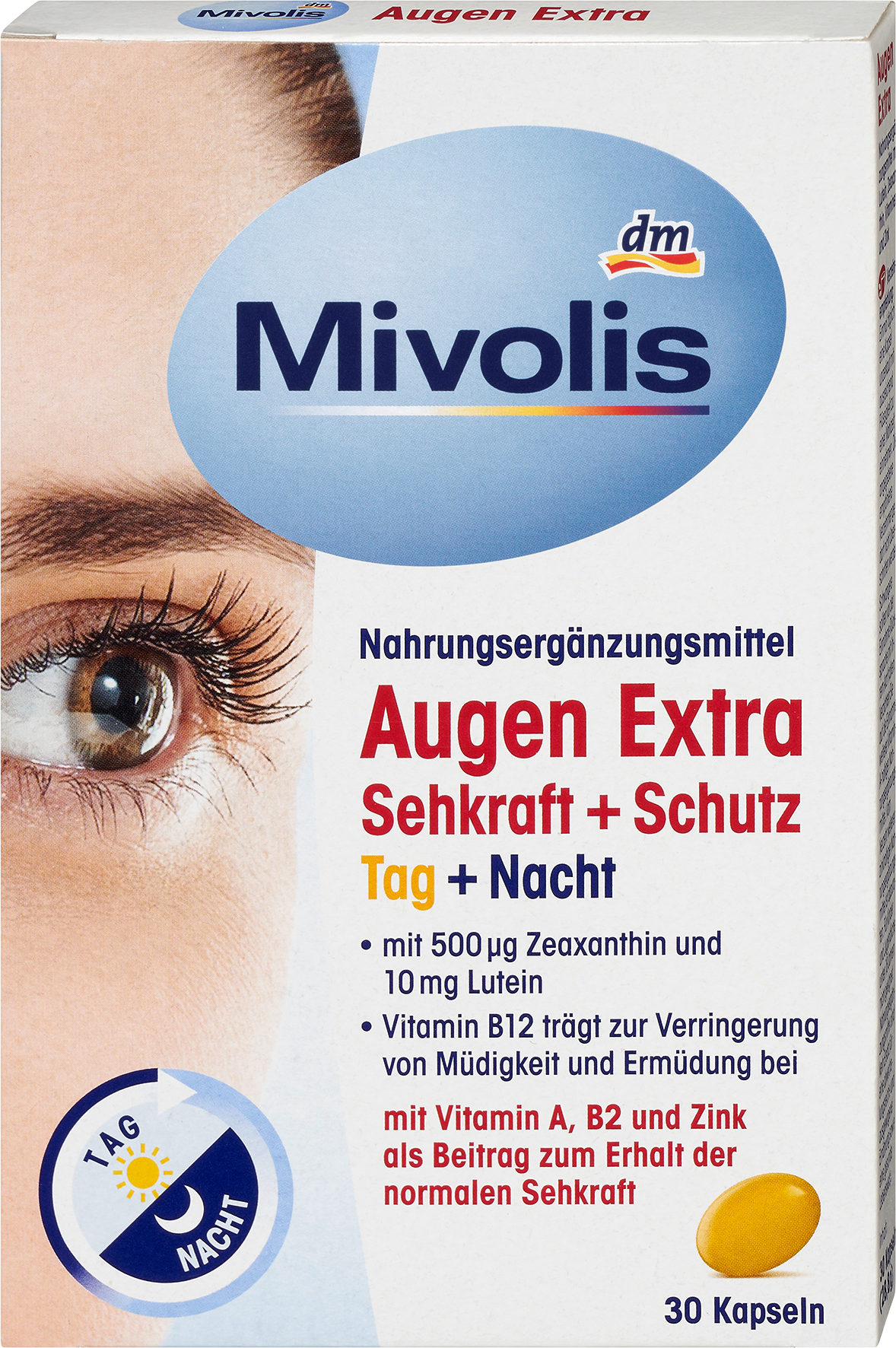 Mivolis Eyes Extra Vision + Protection، نهار + ليل، كبسولات، 30 قطعة، 28.8 غراممكمل غذائي