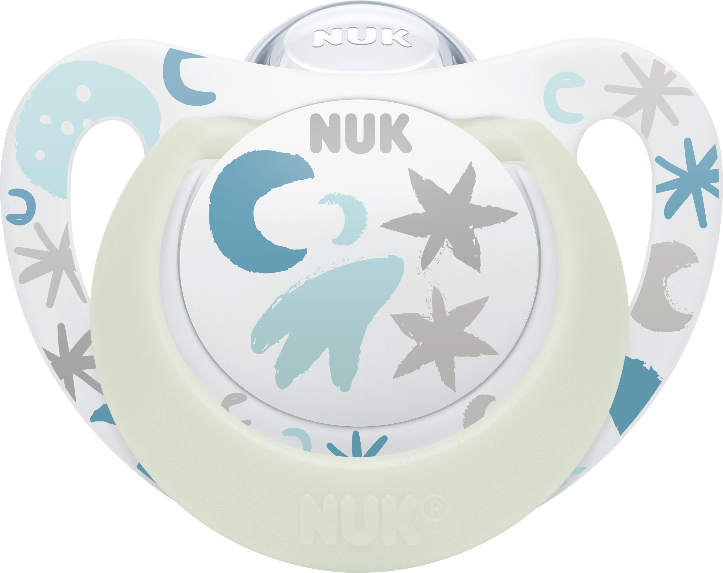 NUK لهاية ستار سيليكون نهاري ونيل ، أزرق / أبيض ، مقاس 1 ، 0-6 أشهر ، 2 قطعة
