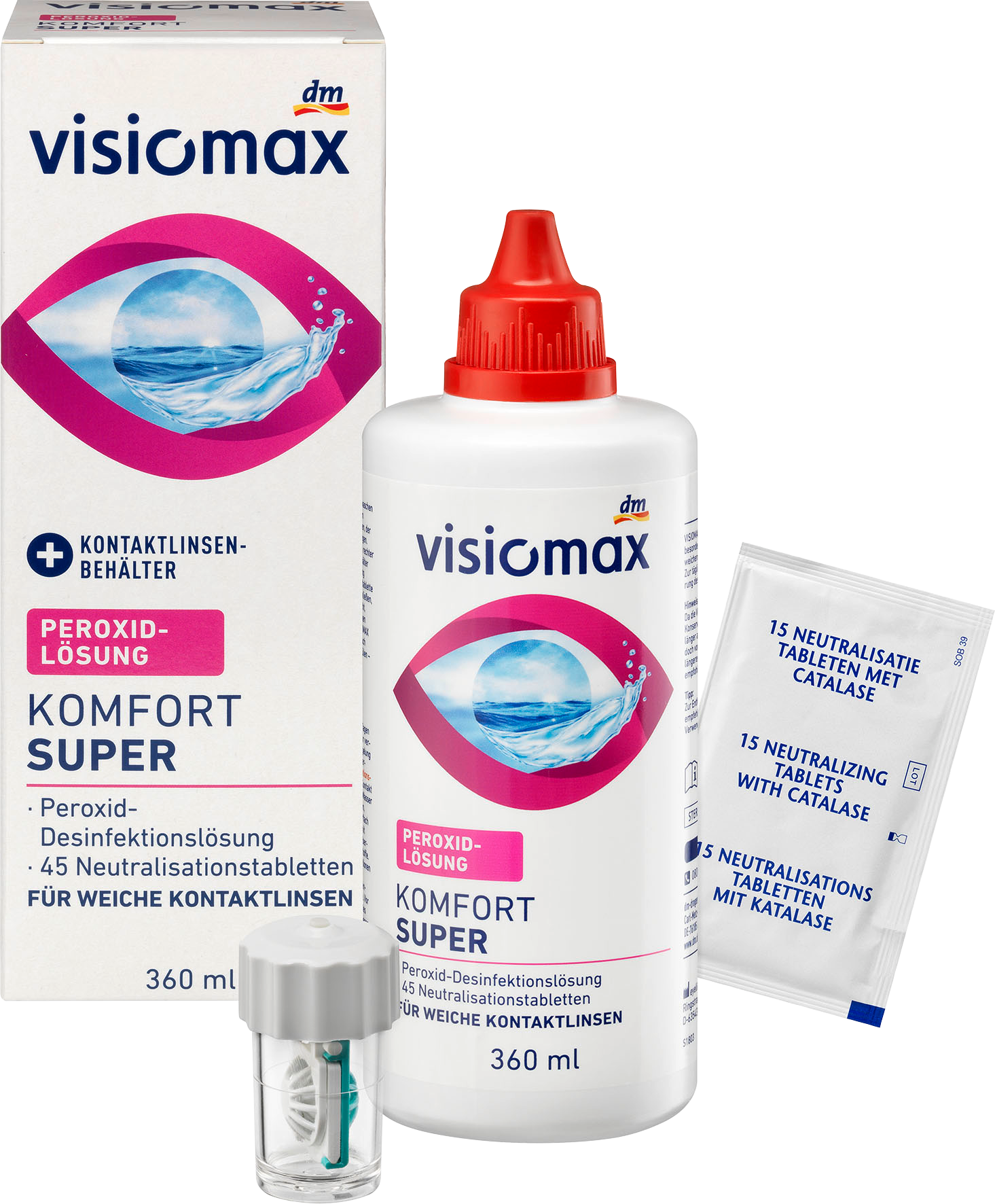 VISIOMAX بيروكسيد سولوشن كومفورت سوبر للعدسات اللاصقة الناعمة ، مع علبة العدسات اللاصقة ، 360 مل جهاز طبي